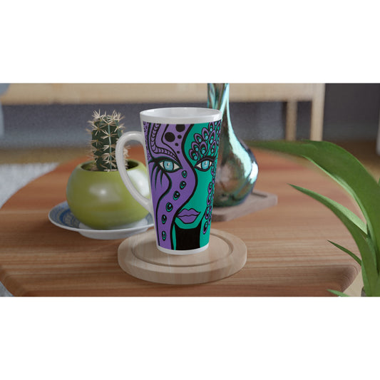 Weiße Latte-Tasse Peacock Woman/Cheetah Woman 500 ml