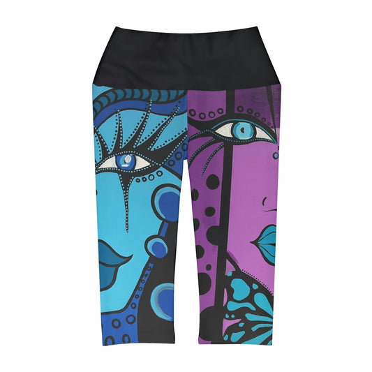 Yoga Capri Leggings Blue Owl Woman / Purple Butterfly Woman