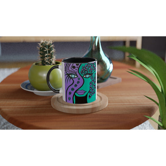 Keramikbecher ZeniArt - Peacock Woman 300 ml